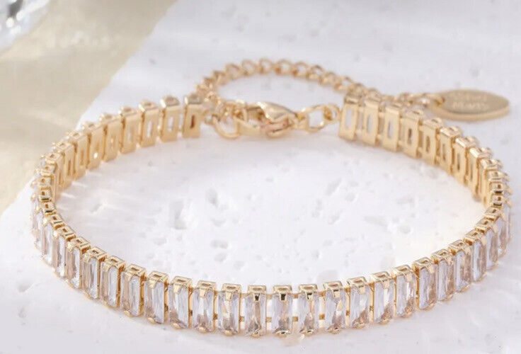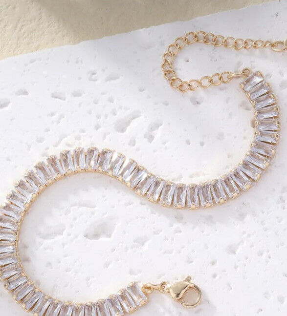 Rectangle Baguette Cubic Zirconia Copper Crystal Bracelet