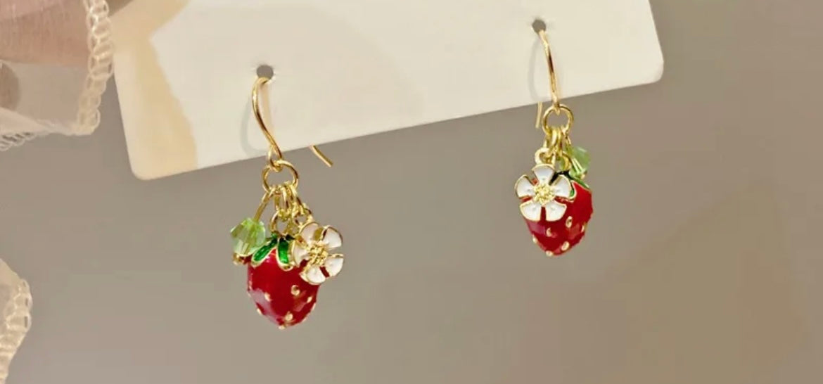 Introducing our Sweet Strawberry Glass Drop Earrings – a playful and chic accessory perfect for adding a fruity pop to any outfit: